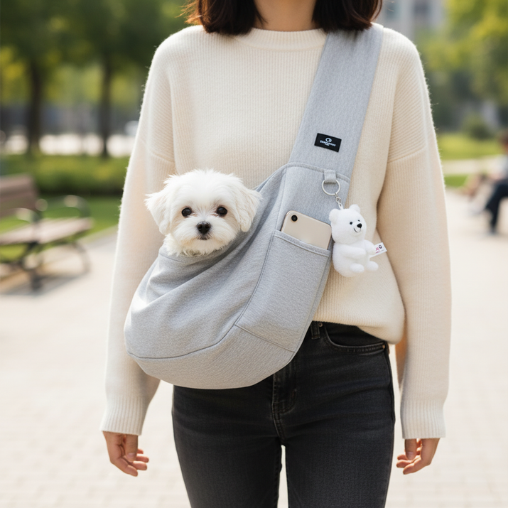 "This sling is a game-changer! My dog gets tired quickly on walks, and now she just curls up inside and enjoys the ride. It’s super comfy, easy to clean, and surprisingly lightweight. I’ve had so many people ask where I got it — totally recommend!"